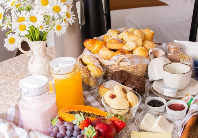Café da manhã incluso, preparado com carinho e ingredientes frescos locais.